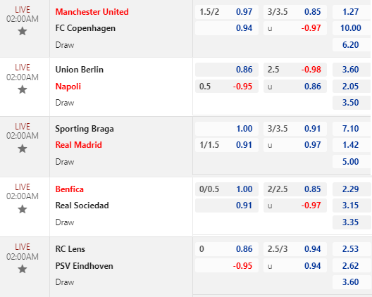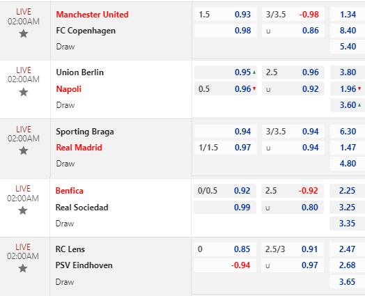 Chốt kèo trực tiếp Cúp C1 châu Âu loạt 02h00: