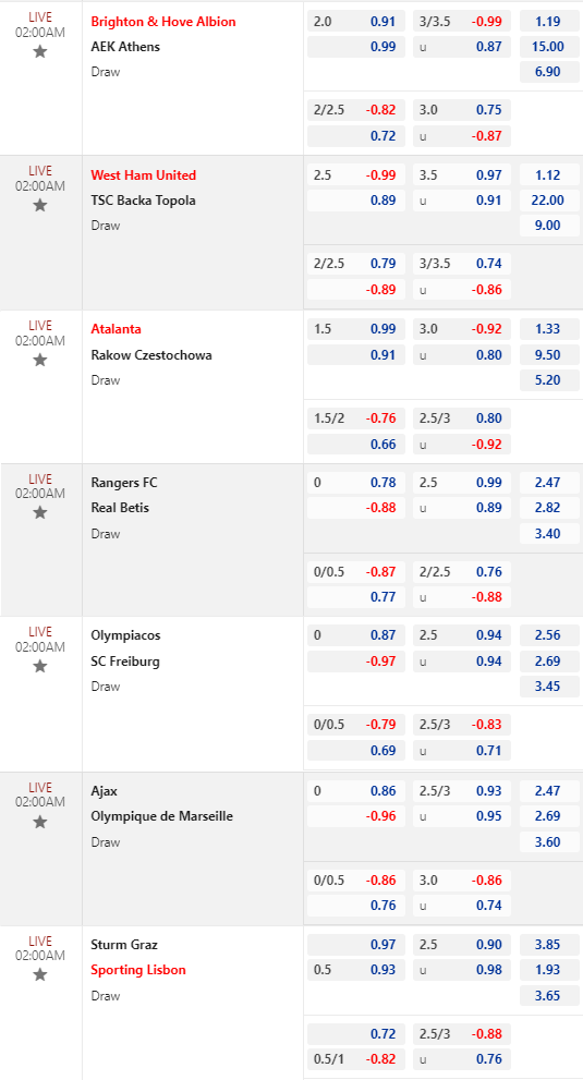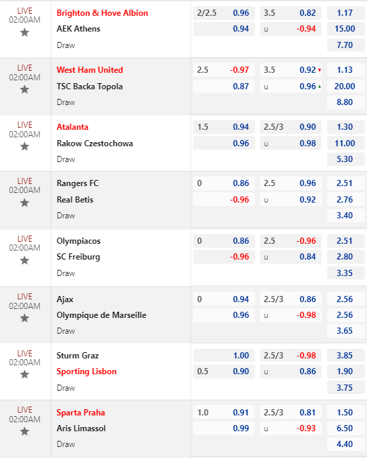 AEGoal chốt kèo bóng đá trực tiếp Cúp châu Âu loạt 02h00 ngày 22/09/2023 dựa trên tính toán và chuyển động về kèo châu Á.