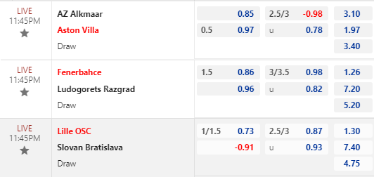 * Lille vs Slovan Bratislava: Chốt Lille -1 1/4 FT