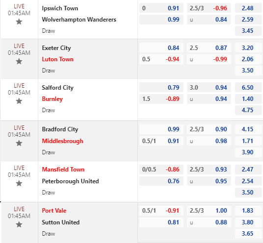 * Salford City vs Burnley: Chốt Salford City +1 1/2 FT