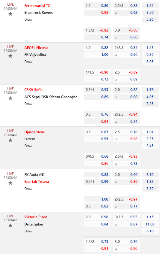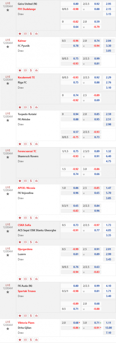 AEGoal chốt kèo bóng đá trực tiếp những trận đấu đáng chú ý trong khuôn khổ Europa Conference League diễn ra lúc 00h00 ngày 28/07/2023 sau khi dựa trên tính toán, chuyển động về kèo châu Á.