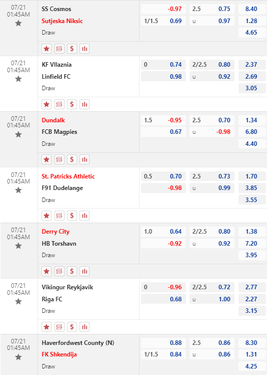 AEGoal chốt kèo bóng đá trực tiếp những trận đấu đáng chú ý trong khuôn khổ Europa Conference League diễn ra lúc 01h45 ngày 21/07/2023 sau khi dựa trên tính toán, chuyển động về kèo châu Á.