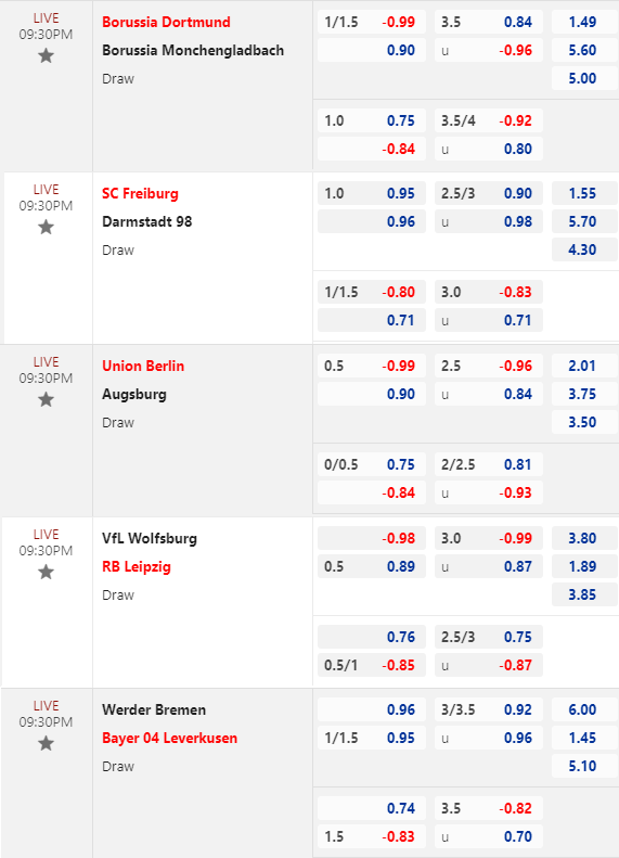 Chốt kèo trực tiếp VĐQG Đức loạt 21h30: