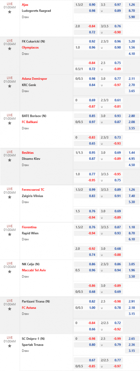 Chốt kèo trực tiếp loạt trận 01h00:
