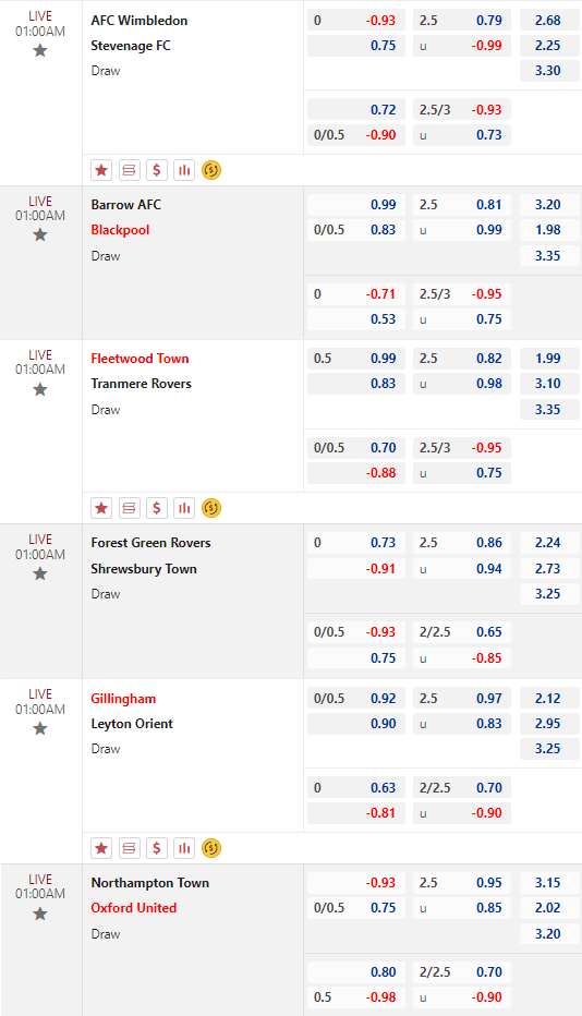 * AFC Wimbledon vs Stevenage: Chốt Wimbledon +0 FT và Tài 2 3/4 FT