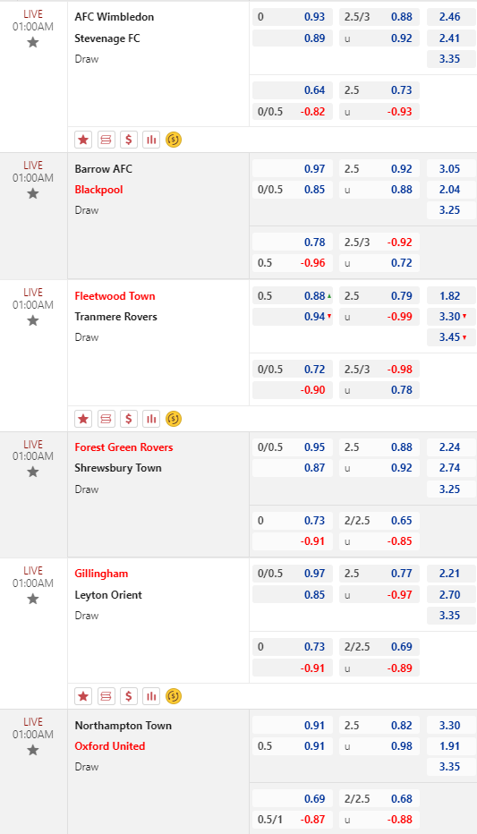 * Fleetwood Town vs Tranmere Rovers: Chốt Tranmere Rovers +1/2 FT