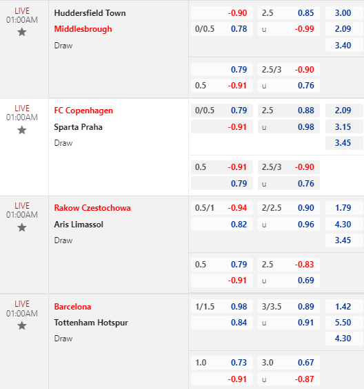 * Barcelona vs Tottenham: Chốt Barcelona -1 1/4 FT và -1/2 HT