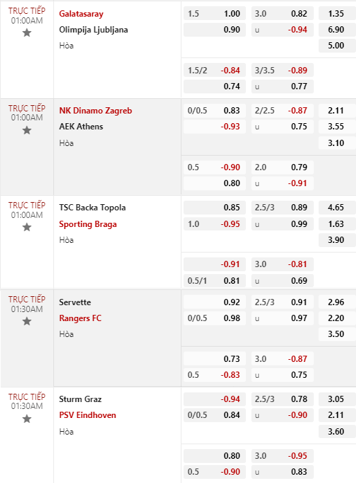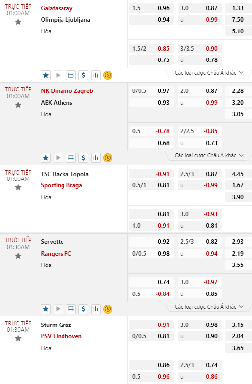 Chốt kèo trực tiếp loạt trận 01h00 và 01h30: