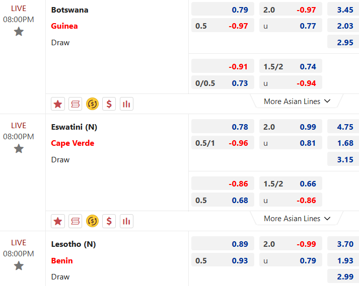 Chốt kèo: Eswatini +3/4 cả trận. Xỉu 2 cả trận