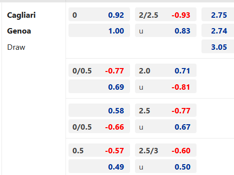 Chốt kèo: Genoa +0 cả trận. Xỉu 2 1/4 cả trận