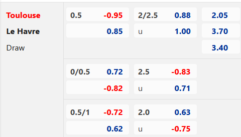 Chốt kèo: Le Havre +1/2 cả trận. Tài 2 1/4 cả trận