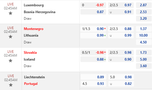 * Liechtenstein vs Bồ Đào Nha: Chốt Bồ Đào Nha -4 1/2 FT