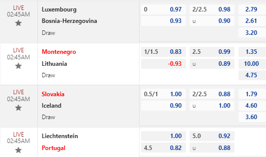 * Montenegro vs Lithuania: Chốt Montenegro -1 1/4 FT