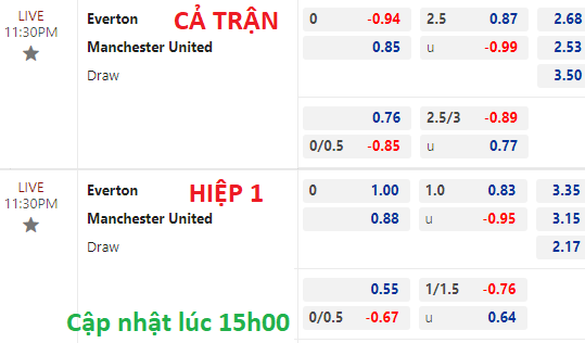 AEGoal chốt kèo bóng đá trực tiếp trận Everton vs Man Utd diễn ra lúc 23h30 ngày 26/11 trong khuôn khổ giải Ngoại hạng Anh sau khi dựa trên tính toán, chuyển động về kèo châu Á và đội hình ra sân của 2 đội.