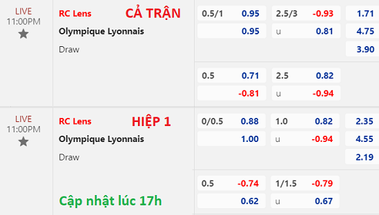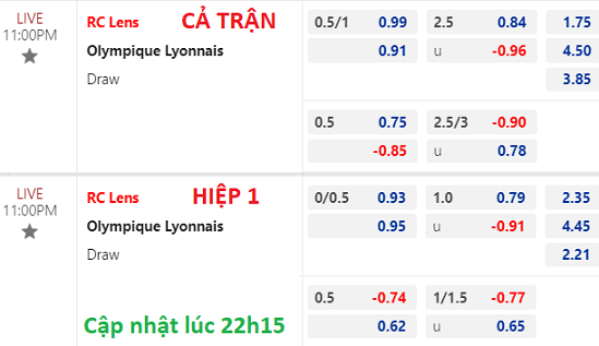 Trên sàn châu Á, Lens vẫn chấp 3/4 với điểm ăn không thay đổi là bao. Trong bối cảnh tài xỉu về mức 2 1/2 thì việc Lens giữ giá là tín hiệu tích cực dành cho họ.