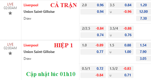 Chốt kèo trực tiếp trận Liverpool vs Saint-Gilloise (02h00):