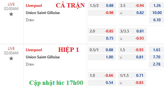 AEGoal chốt kèo bóng đá trực tiếp trận Liverpool vs Saint-Gilloise diễn ra lúc 02h00 ngày 06/10/2023 trong khuôn khổ Europa League sau khi dựa trên tính toán, chuyển động về kèo châu Á và đội hình ra sân của 2 đội.