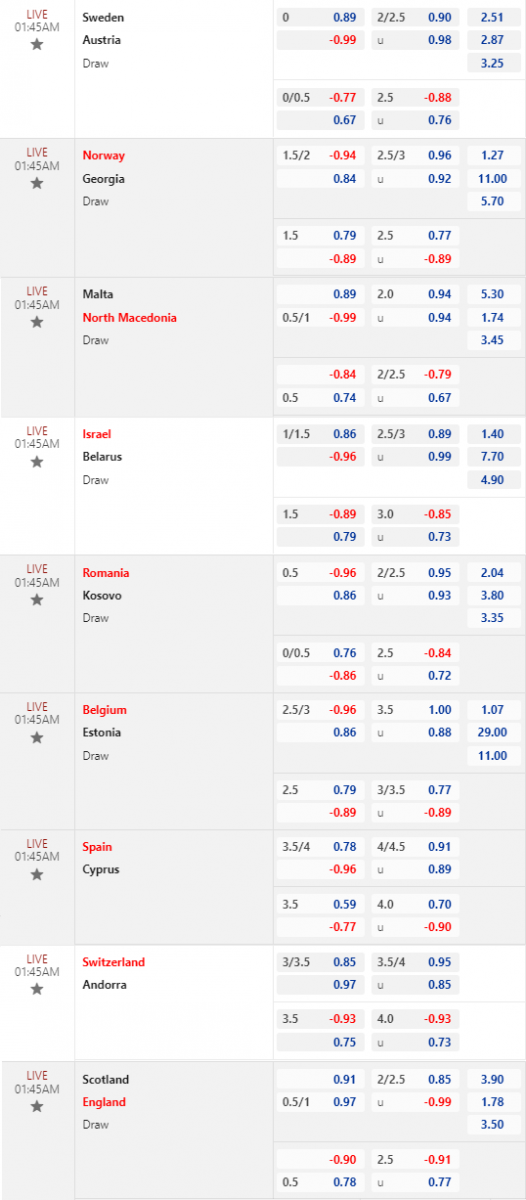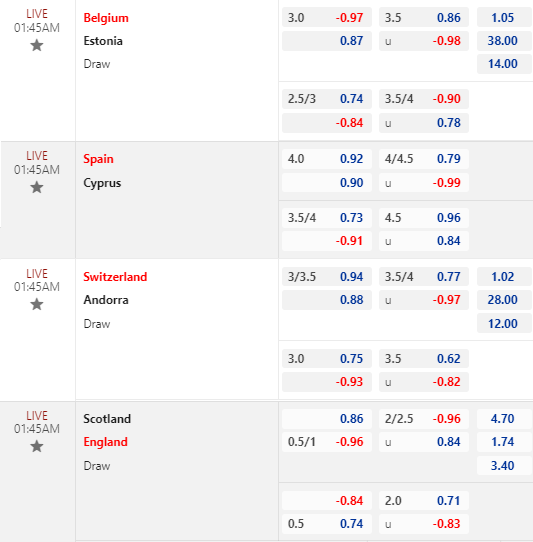 * Bỉ vs Estonia: Chốt Bỉ -2 3/4 FT