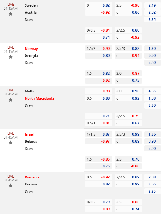 * Na Uy vs Georgia: Chốt Na Uy -1 3/4 FT