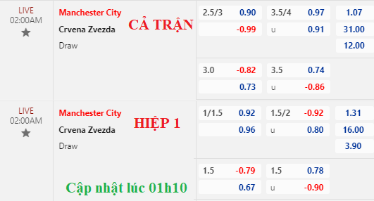 Trên sàn châu Á, Man City về còn chấp 2 3/4 và tài xỉu cũng được điều chỉnh xuống còn 3 3/4. Tuy nhiên thì với đội hình xuất phát đầy rẫy ngôi sao, The Citizen vẫn đủ sức thắng đậm trận này.