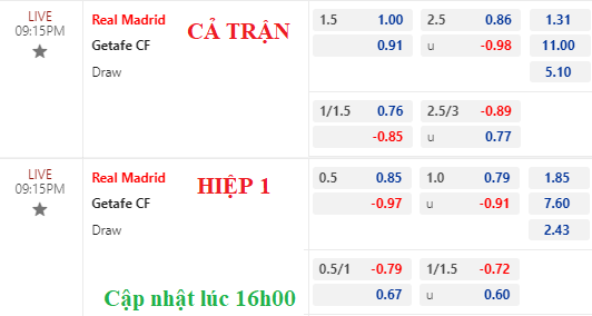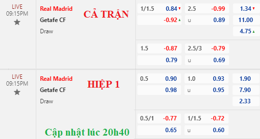 Trên sàn châu Á, Real Madrid mất giá khi từ chấp 1 1/2 về còn chấp 1 1/4. Trong khi đó thì tài xỉu 2 1/2 ghi nhận điểm ăn cho cửa tài tiến đến mức bỏ. Với đội hình hiện tại, khó cho Real có thể thắng cách biệt đối phương.