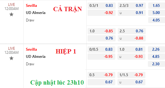 AEGoal chốt kèo bóng đá trực tiếp trận Sevilla vs Almeria diễn ra lúc 00h00 ngày 27/09/2023 trong khuôn khổ giải VĐQG Tây Ban Nha sau khi dựa trên tính toán, chuyển động về kèo châu Á và đội hình ra sân của 2 đội.