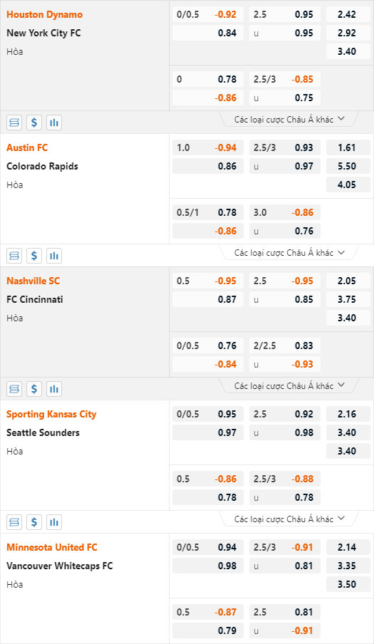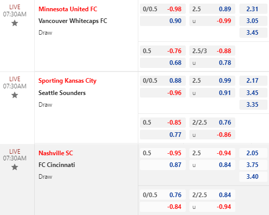 * Sporting Kansas City vs Seattle Sounders: Phong độ tệ hại khi toàn hòa với thua từ đầu mùa nhưng Sporting Kansas City vẫn duy trì vị thế cửa trên với kèo chấp đồng banh ăn ít trận này, điều đó cho thấy chủ là lựa chọn khả dĩ.
