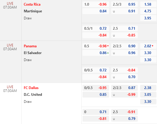 * Panama vs El Salvador: Panama vẫn chấp hòa với lợi nhuận ở mức bỏ. Nhìn sang kèo hiệp 1 họ chấp có 1/4 nhưng bỏ sâu là dạng tỷ lệ không khả quan dành cho cửa trên.