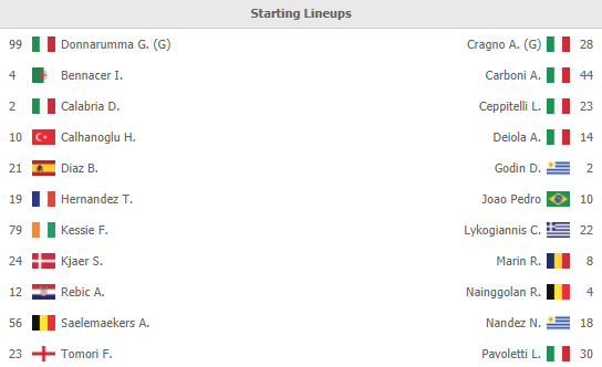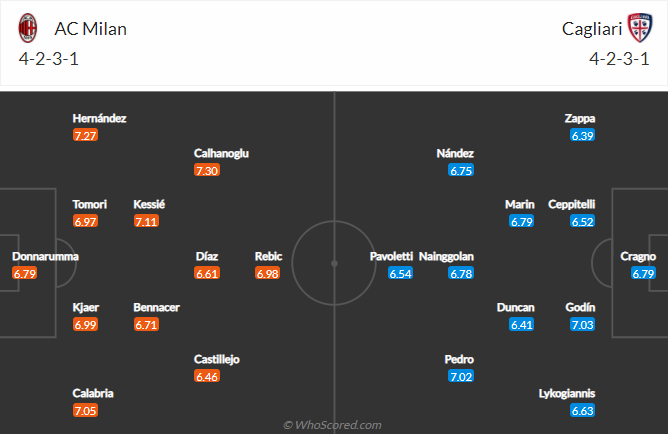 Không có Ibrahimovic nhưng AC Milan vẫn còn đó những cái tên đáng tin như Calhanoglu, Rebic hay Saelemaekers. Cagliari sở hữu đội hình không tệ nhưng họ đã hết động lực. Vì thế, đây là cơ hội cho Rossoneri.