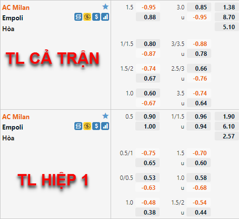 Tung ra đội hình mạnh nhất, AC Milan đang cho thấy sự áp đảo trước Empoli. Trên sàn sao dịch châu Á, việc kèo chấp vẫn duy trì mức 1 1/2 cũng củng cố thêm niềm tin cho điều đó.