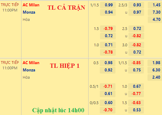 Việc AC Milan mất giá nhẹ (vẫn là kèo chấp 1 1/4 nhưng bỏ sâu) phần vì đội hình ra sân như vậy, nhưng dịch chuyển vẫn chưa phải quá lớn. Thực tế AC Milan thời gian gần đây biết cách điều chỉnh nhịp độ cho phù hợp với từng trận cầu tại Serie A. Monza dù có quyết tâm nhưng thực lực vẫn yếu hơn nhiều so với chủ.