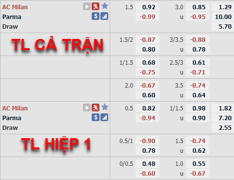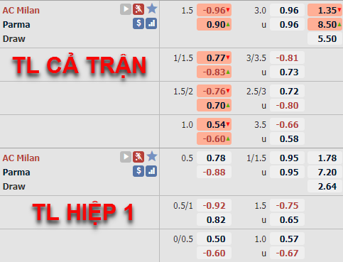 Tỷ lệ chấp của AC Milan đang có xu hướng giảm điểm khi gần thời điểm bóng lăn. Hiện tại đội chủ nhà vẫn đang có tỷ lệ chấp chính là 1 1/2 nhưng điểm ăn đã được điều chỉnh tăng rõ rệt. Diễn biến bên phía mốc tài xỉu của trận đấu cũng tương tự khi mức 3 hoà vẫn được duy trì là mốc chính nhưng điểm của cửa tài đang có xu hương tăng.