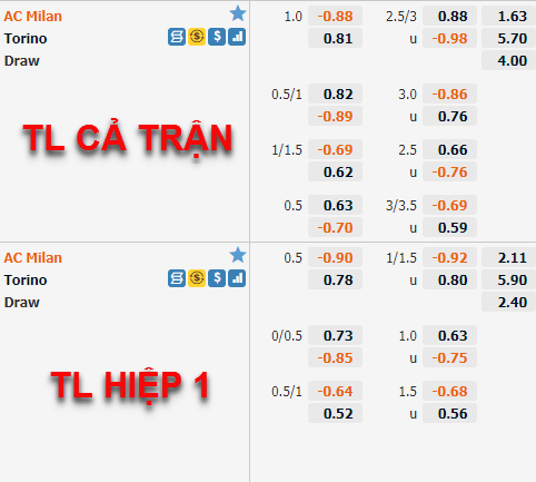 THAM KHẢO: Torino (+3/4) cả trận