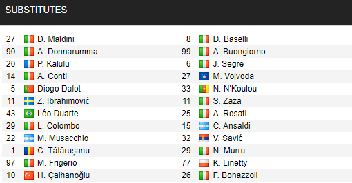 - Torino: Có đầy đủ đội hình.