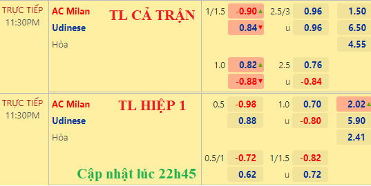AEGoal chốt kèo bóng đá trực tiếp trận AC Milan vs Udinese diễn ra lúc 23h30 ngày 13/08 trong khuôn khổ giải VĐQG Italia sau khi dựa trên tính toán, chuyển động về kèo châu Á và đội hình ra sân của 2 đội.