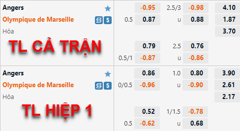 AEGoal chốt kèo bóng đá trực tiếp trận Angers vs Marseille diễn ra lúc 02h00 ngày 01/10 trong khuôn khổ giải VĐQG Pháp sau khi dựa trên tính toán, chuyển động về kèo châu Á và đội hình ra sân của 2 đội.