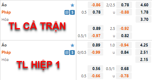 Bấp chấp việc Mbappe cùng nhiều nhân tố đáng chú ý khác ngồi ghế dự bị, Pháp vẫn có đà tăng điểm đáng hy vọng trên sàn giao dịch châu Á. Kèo chấp 3/4 đã có lợi điểm cân bằng hơn so với đầu phiên có chỉ số bỏ khá sâu trên thị trường khớp lệnh. Điều này cho thấy Áo sau thất bại ở trận gần nhất gặp Đan Mạch vừa qua đã không còn nhận được sự tin tưởng của giới mộ điệu.