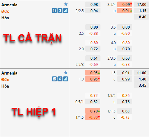 Diễn biến trên sàn giao dịch châu Á cho thấy giới đầu tư không mấy tin tưởng vào khả năng thắng kèo của ĐT Đức trận này. Điều này cũng dễ hiểu khi ĐT Đức không xuất phát với lực lượng mạnh nhất của họ và cũng không còn mục tiêu trận này, nhưng theo chúng tôi ở phía bên kia Armenia cũng gần như hết hy vọng. Đội chủ nhà cũng không còn mục tiêu cụ thể nào cho trận đấu này, mặc dù ĐT Đức không có lực lượng tốt nhất nhưng thực tế các cầu thủ trong đội hình xuất phát vất vượt xa so với Armenia. Đội khách hoàn toàn đủ khả năng có một trận thắng đậm.