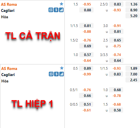 AS Roma -1 1/4 cả trận