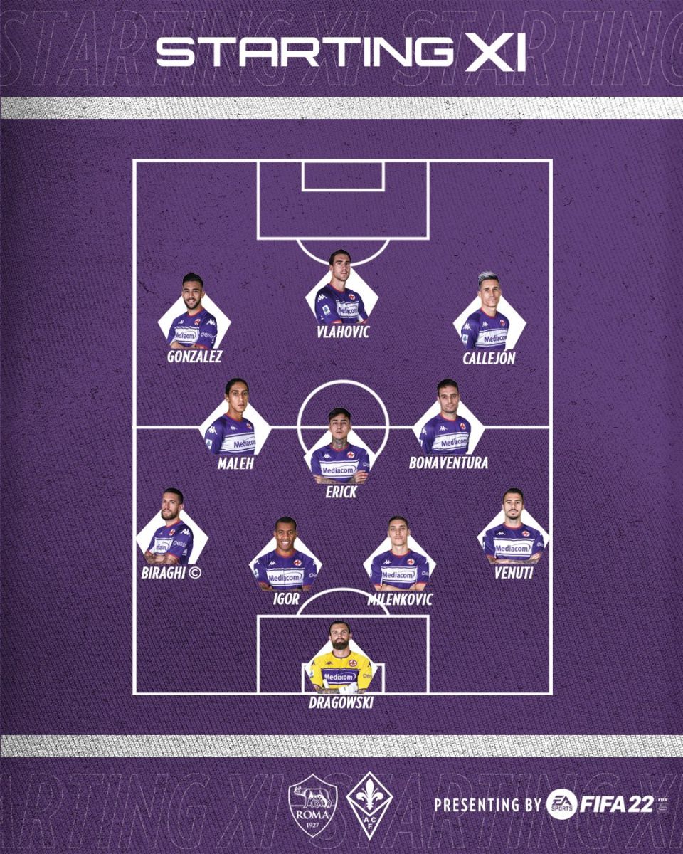 Fiorentina (4-3-3): Dragowski; Venuti, Milenkovic, Igor, Biraghi; Bonaventura, Pulgar, Castrovilli; Callejon, Vlahovic, Gonzalez.