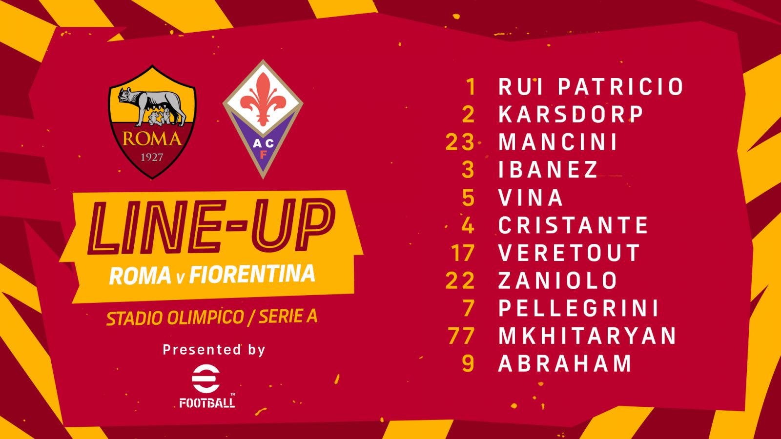AS Roma (4-2-3-1): Rui Patricio; Karsdorp, Mancini, Ibanez, Vina; Cristante, Diawara; Zaniolo, Mkhitaryan, El Shaarawy; Shomurodov.