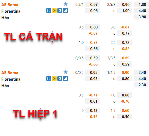 AEGoal chốt kèo bóng đá trực tiếp trận AS Roma vs Fiorentina diễn ra lúc 01h45 ngày 23/8 trong khuôn khổ giải VĐQG Italia sau khi dựa trên tính toán, chuyển động về kèo châu Á và đội hình ra sân của 2 đội.