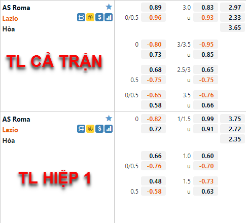 * Chốt kèo trận AS Roma vs Lazio (01h45 ngày 16/5)