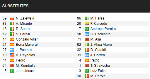 AS Roma (4-2-3-1): Fuzato - Karsdorp, Mancini, Kumbulla, Santon - Cristante, Darboe - Pedro, Pellegrini, Mkhitaryan - Mayoral