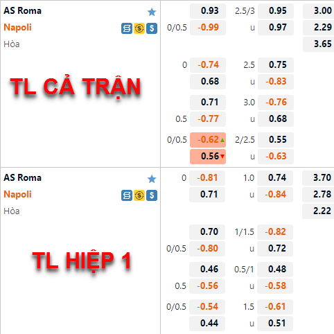 AEGoal chốt kèo bóng đá trực tiếp trận AS Roma vs Napoli diễn ra lúc 01h45 ngày 24/10 trong khuôn khổ giải VĐQG Italia sau khi dựa trên tính toán, chuyển động về kèo châu Á và đội hình ra sân của 2 đội.