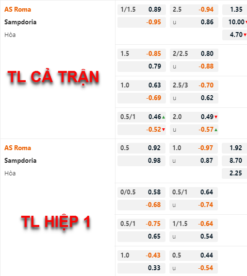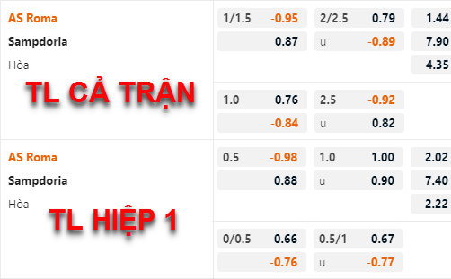 AEGoal Chốt kèo bóng đá trực tiếp trận AS Roma vs Sampdoria diễn ra lúc 23h00 ngày 02/04 trong khuôn khổ giải VĐQG Italia sau khi dựa trên tính toán, chuyển động về kèo châu Á và Đội hình ra sân của 2 đội.
