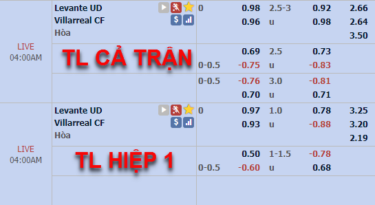 So với đầu phiên, kèo Tài-Xỉu đã tăng chóng mặt từ 2 3/4 lên 3 hòa ở thời điểm hiện tại. Trong hoàn cảnh cả 2 đội đều quyết tâm có chiến thắng và lối chơi đặc trưng cũng mang đến sự hứng khởi nhất định. Cần biết rằng, dù đối mặt với Tàu ngầm vàng nhưng Levante đã bố trí sơ đồ 4-3-3 giàu sức tấn công cũng cho thấy đội chủ nhà sẽ chơi chủ động.