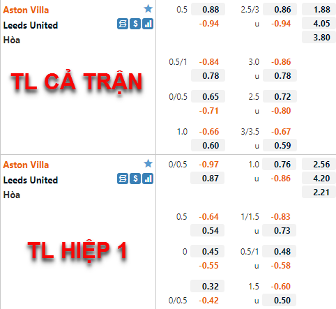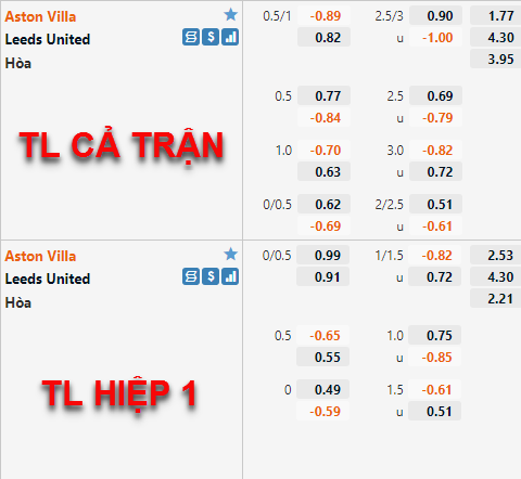 Tỷ lệ chấp của đội chủ nhà có xu hướng giảm điểm, hiện tại mốc chấp chính của Aston Villa đã được nhà cái điều chỉnh từ mốc 3/4 xuống 1/2. Trong khi đó tỷ lệ tài xỉu của trận đấu lại không có nhiều biến động, mốc 2 3/4 vẫn là mốc chính của trận đấu, điểm ăn không có nhiều thay đổi so với trước đây.