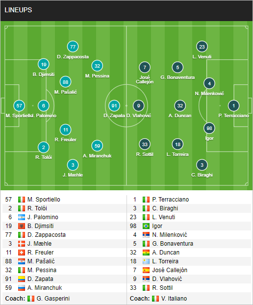 - Địa điểm: Sân Gewiss Stadium (Bergamo)