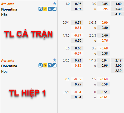 Thiếu vắng khá nhiều những cái tên quan trọng trong đội hình, thế nhưng Atalanta vẫn đang duy trì được vị thế trên sàn giao dịch châu Á, Cụ thể họ vẫn chấp Fiorentina ở kèo -1 và dù điểm ăn có tăng nhưng không đáng kể và vẫn đang duy trì được sự cân bằng so với đối thủ, vì vậy độ tin cậy cho đội chủ sân Gewiss là không hề nhỏ.